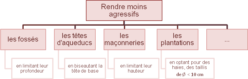 Fragiliser ou rendre un obstacle moins agressif consiste à faire en sorte que le véhicule impactant ne subisse pas une brusque décélération.